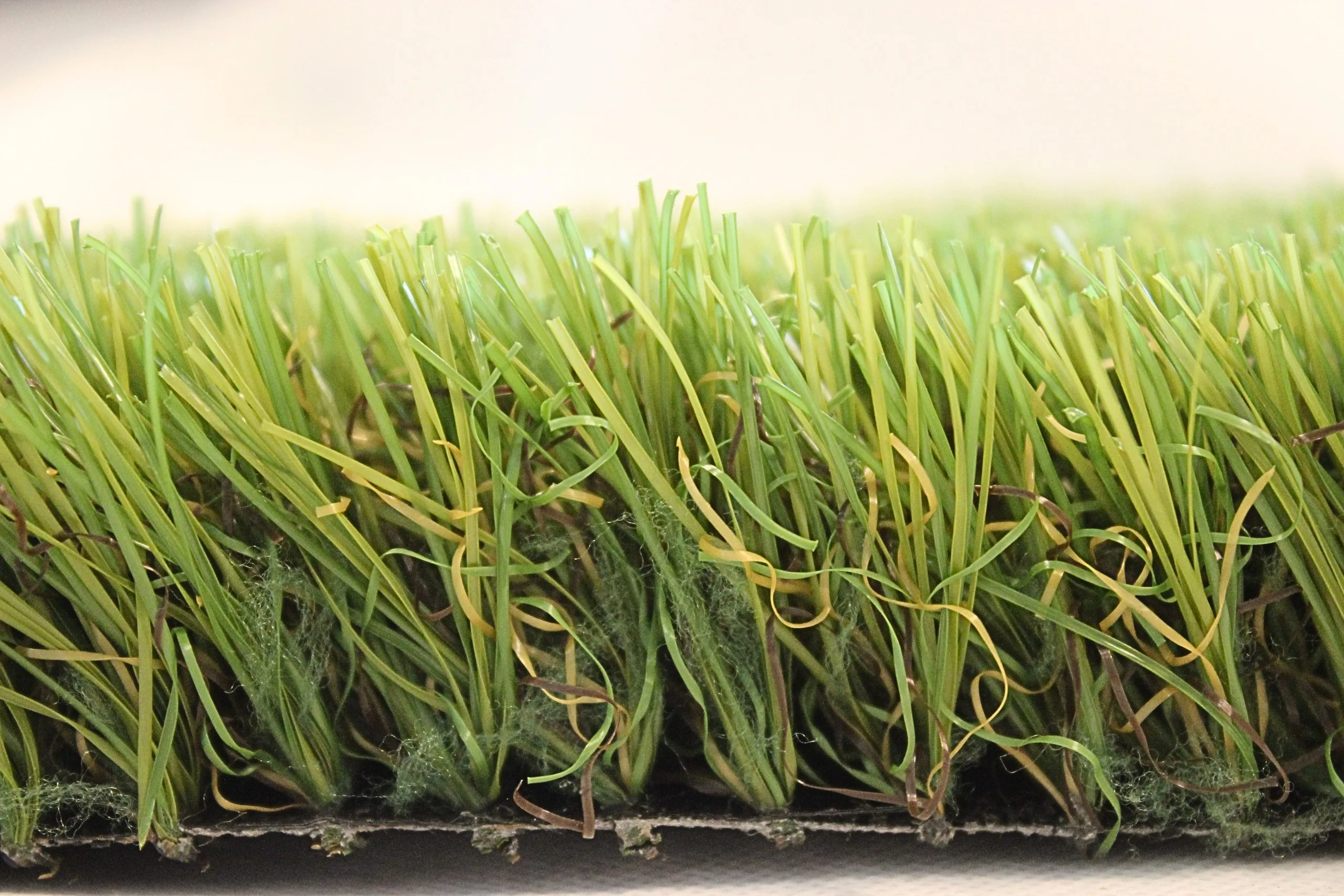 - Color. La tonalidad de este polímero es blanquecina, por lo que su coloreado es más sencillo que en el caso del PE. De esta forma, se consigue una tonalidad verde que imita muy bien al césped natural.