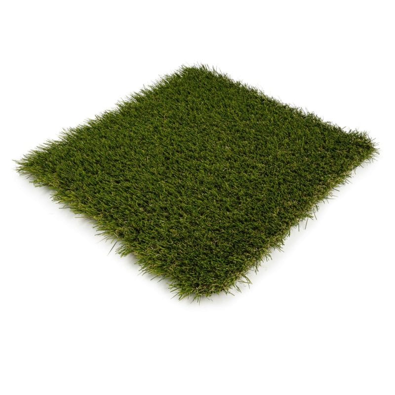 Es un césped artificial muy natural con tonos marrones y tonos verdes como verde oliva y esmeralda.