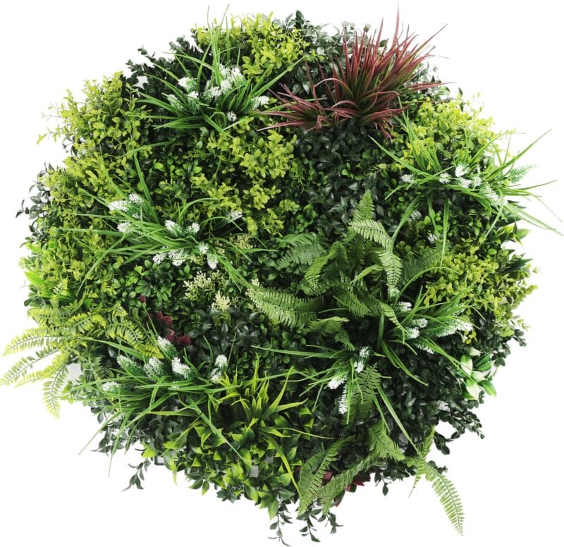 Su instalación es muy sencilla y su mantenimiento aún más. Solo necesitarás un plumero y un paño húmedo para que el aspecto de tu jardín vertical artificial redondo Full Moon esté impecable como el primer día.