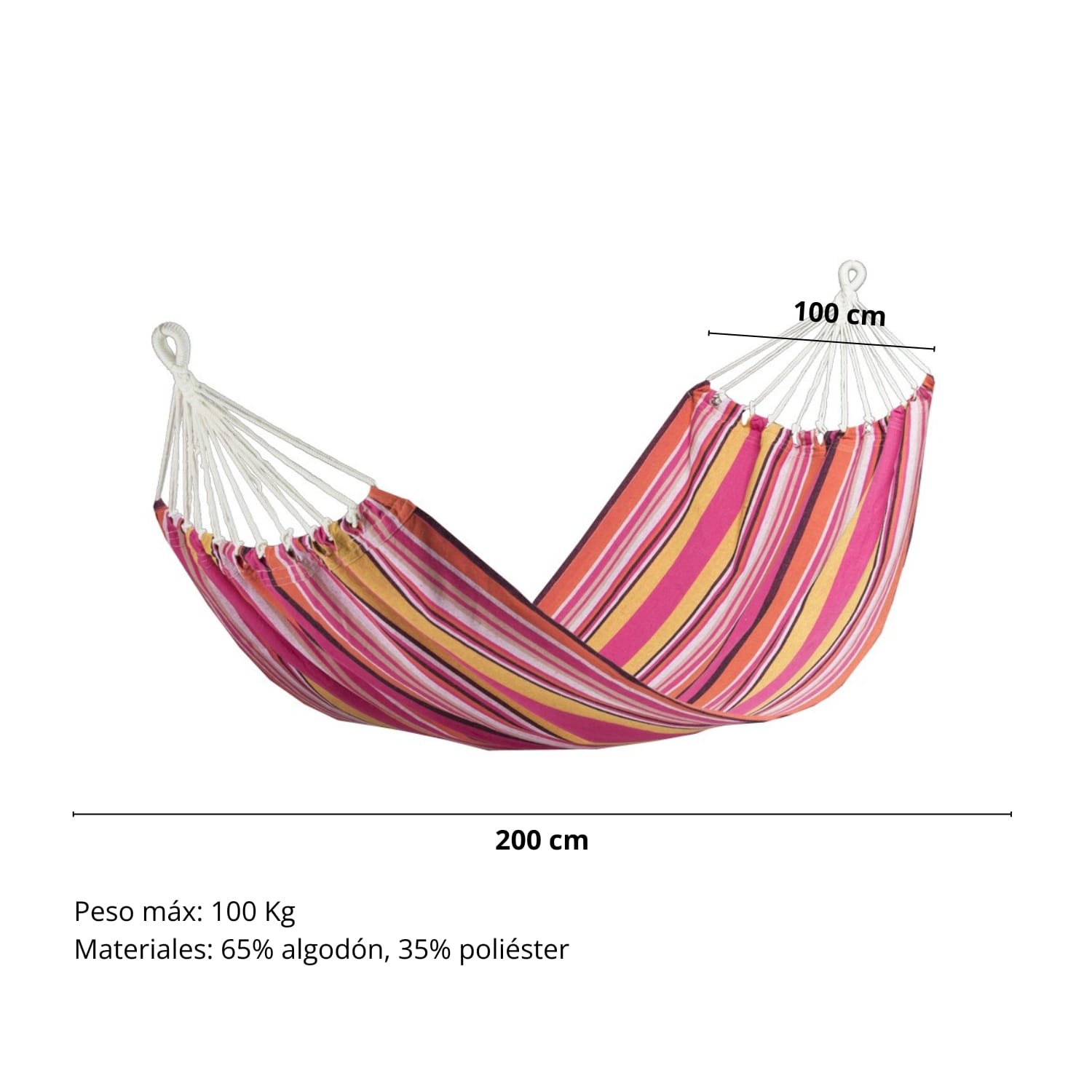 La hamaca de tela Habana es perfecta para jardines, terrazas, porches y patios. ¡Lleva los colores de la Habana a tu propio jardín! Su colorido llenará de luz y vida cualquier rincón. Además, es muy cómoda para que puedas disfrutarla mientras trabajas, dibujas, lees o ves tu serie favorita. Un espacio de paz y relax para dedicártelo a ti mismo. Con una fácil instalación sobre cualquier tipo de superficie gracias a su kit de instalación incluido en el precio. Viene con una funda para poder guardarla.