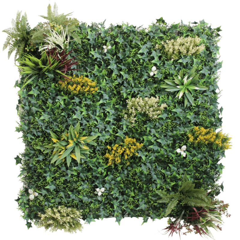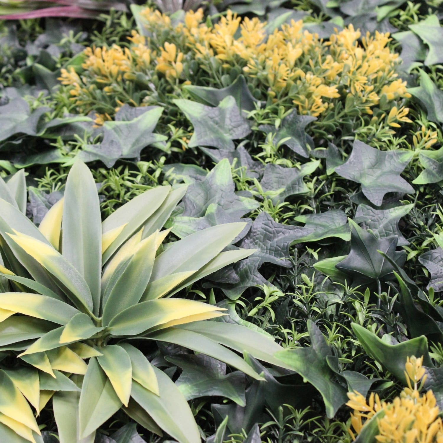 El jardín vertical artificial Magic Garden es nuestro jardín más original. Cuenta con una combinación de plantas de diferentes estilos y tonalidades, que hacen del jardín una pieza creativa para decorar tanto interiores como exteriores de casas, terrazas, patios, oficinas… Sus tonalidades son verdes, blancos y amarillos. Algunas de las plantas que se encuentran en el jardín son hiedras, flores de mimosas y hojas de agave. ¡Un jardín artificial único para un estilo muy personal!