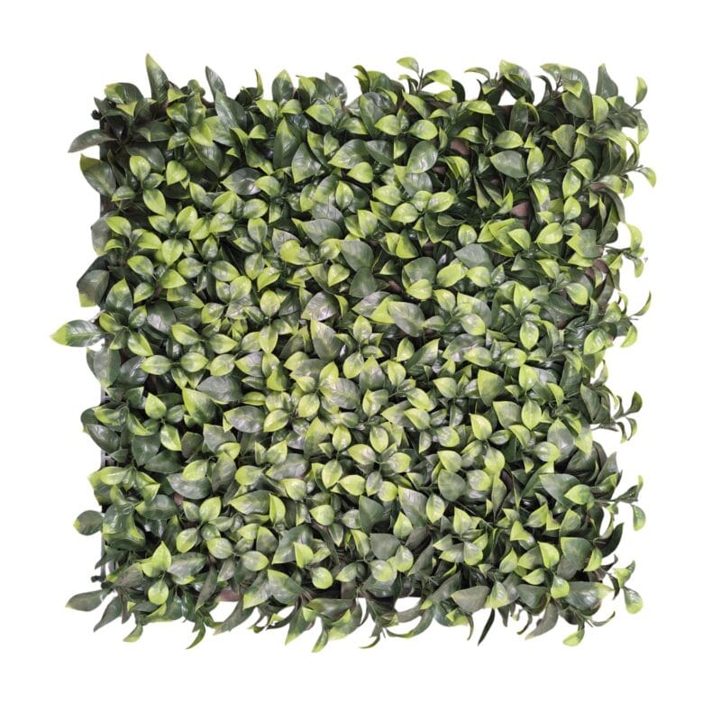 Modelo de jardín vertical artificial Ficus con doble tonalidad en sus hojas. ¡Solo quedan disponibles 0,25m2! Perfecto para decorar un espacio pequeño y olvidarte completamente de su mantenimiento.
