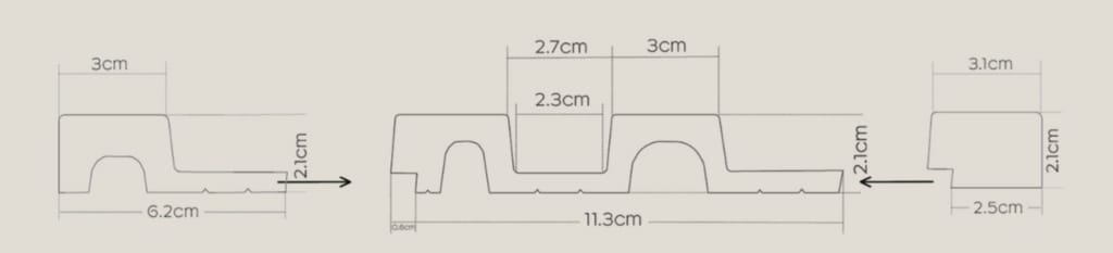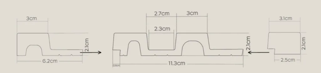 Panel decorativo acústico de la serie HUGO de 11,9 x 270 cm.