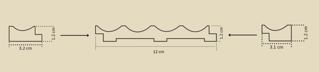 Paneles decorativos de diseño ondulado, compuestos por cuatro listones cóncavos.
