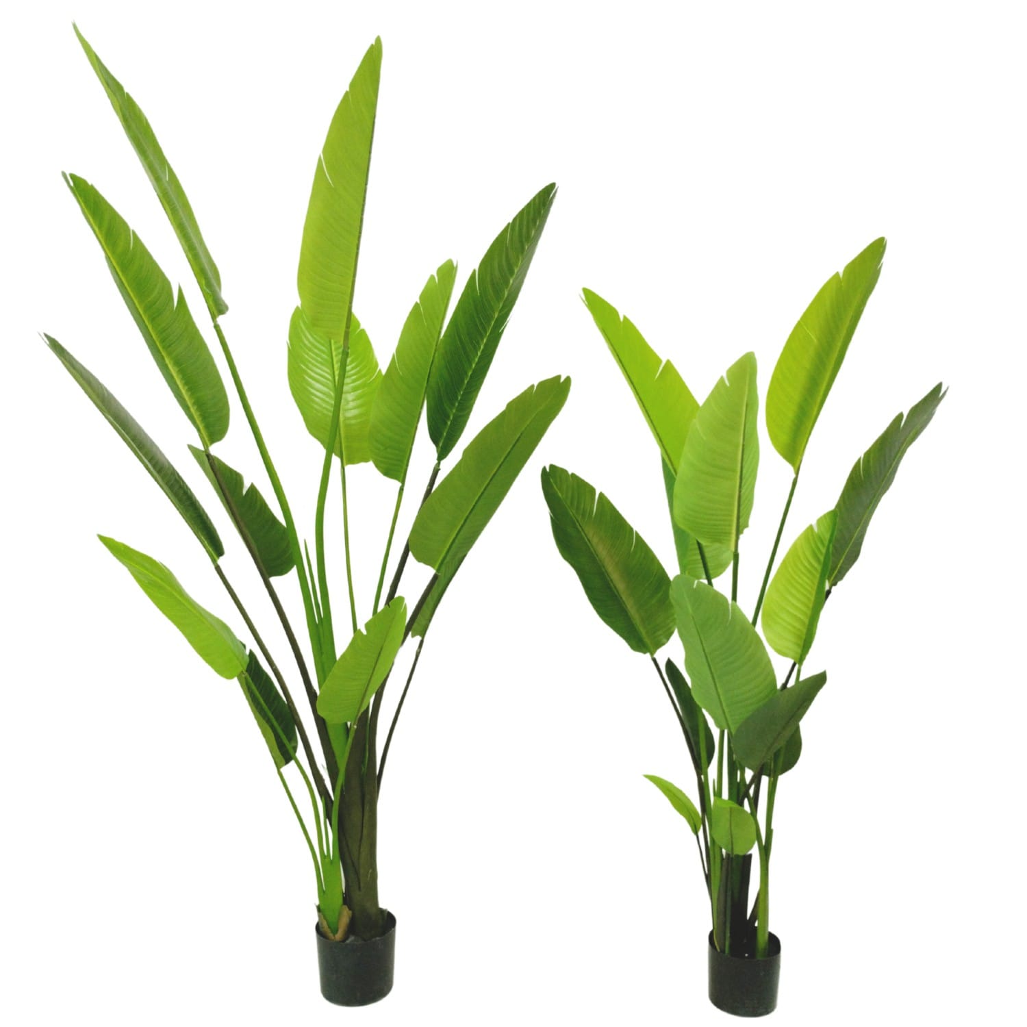 Planta artificial strelitzia disponible en 150 cm y 180 cm de altura. Viene con macetero básico incluido.