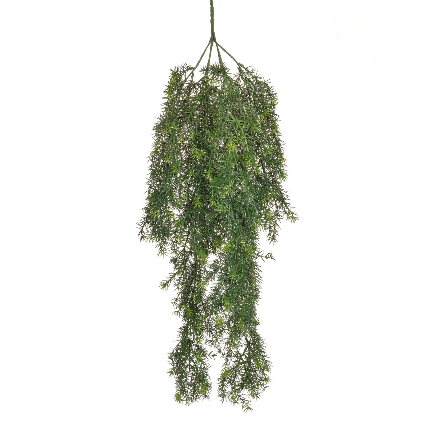 Planta artificial colgante Green Springeri. Mide 85 cm de largo. Cuenta con tratamiento UV y fire retardant.